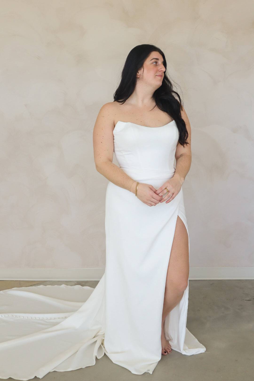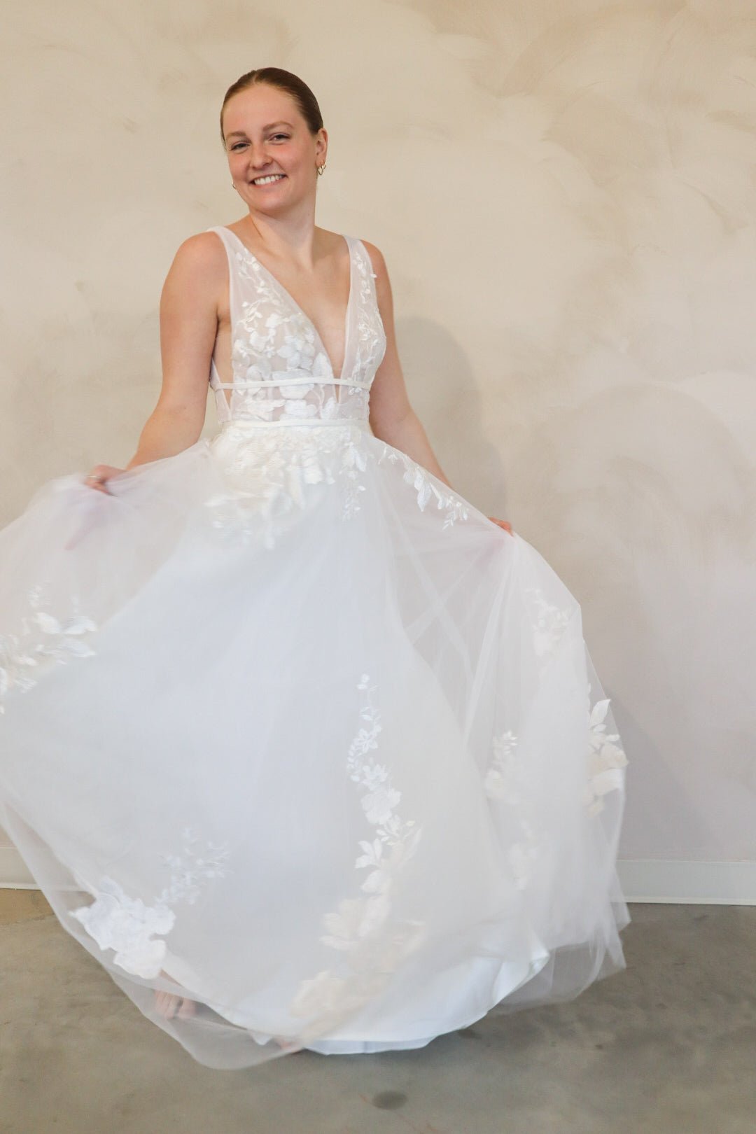 Unlike a traditional bridal experience, our Dearly Destination provides a self-serve space to touch and see our gowns in person.Â