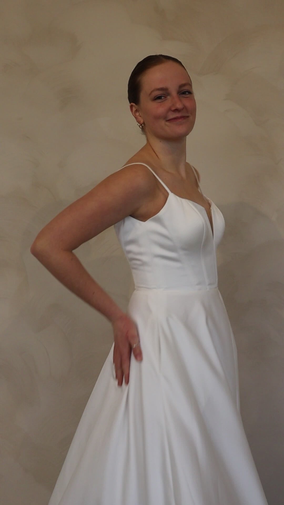 Introducing "Archer"- For the bride who's all about effortless chic, this gown is a total vibe. With sleek spaghetti straps and a flattering sweetheart neckline, it's got that perfect mix of elegance and edge. The standout thigh-high slit adds a daring touch, while the flowy A-line skirt keeps it soft and dreamy. Whether you're going for a modern vibe or something with a little extra flair, this dress is the one that’ll have all eyes on you. Classic white, but with a twist—because who says bridal can’t be bold?